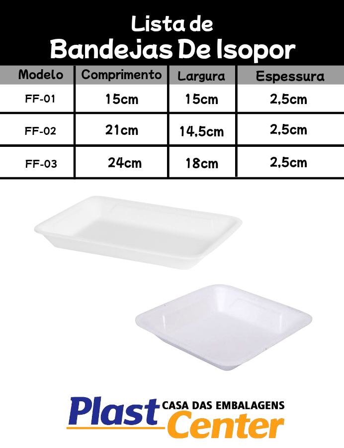 Início / Embalagens De Isopor / Bandeja Funda Isopor FF